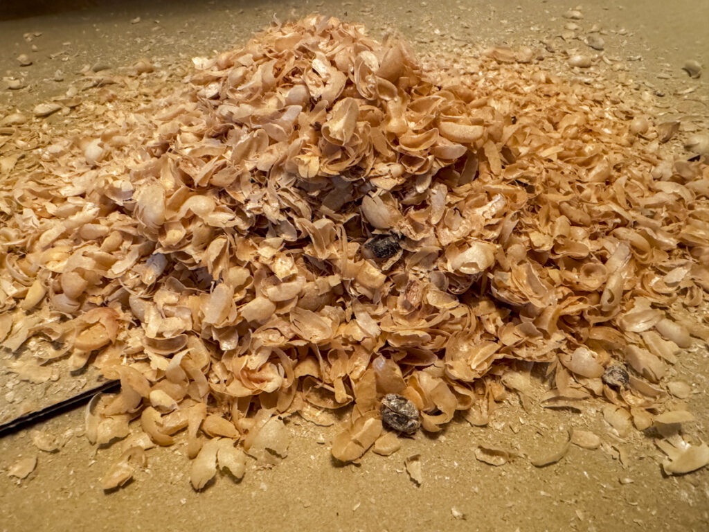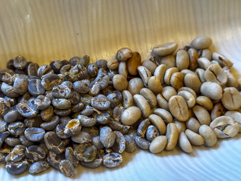 仙台に届いた豆は,白っぽい皮(内果皮)が付いた状態(パーチメント)です。